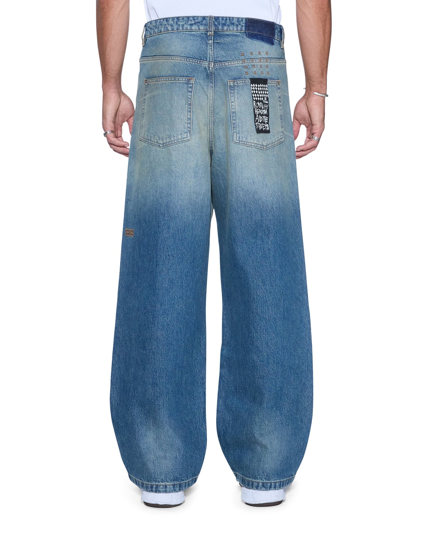 The Maxx Portland Blue is an exaggerated straight-leg jean with a long rise, designed in a mid-blue denim wash. Made from rigid denim with subtle stonewash and vintage worn-in wear patterns, it features classic five-pocket styling, ghost patching detailing and is finished with signature t-box and 4x4 embroidery and Ksubi branded hardware