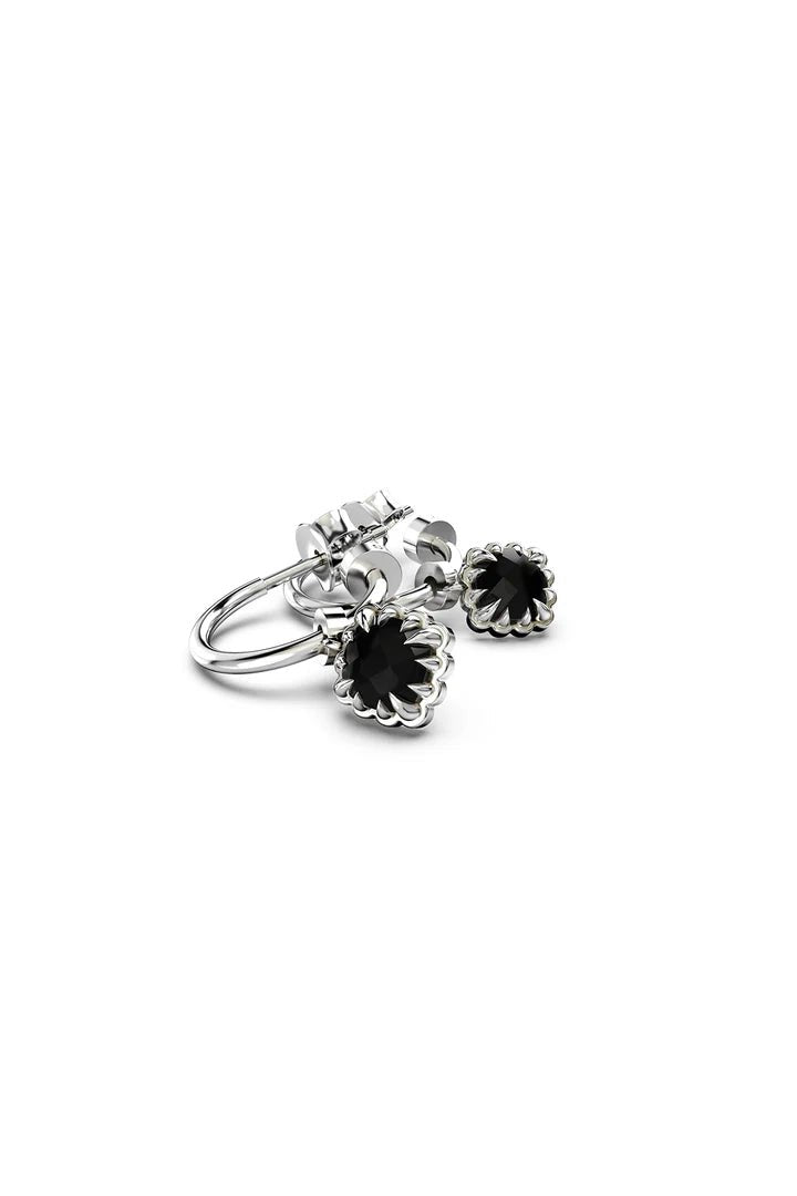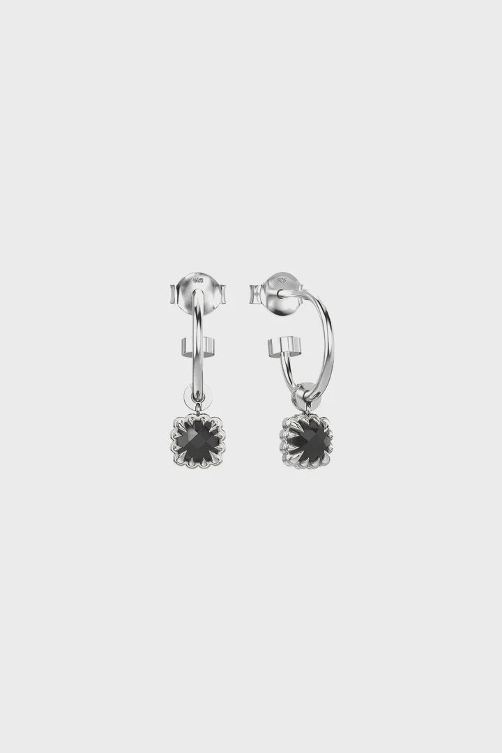 The Baby Claw Anchor Sleeper Earrings from Stolen Girlfriends Club showcase square Onyx stone charms secured in their unique claw setting. This pair of elegant drop earrings are made from solid sterling silver with a high polish finish.