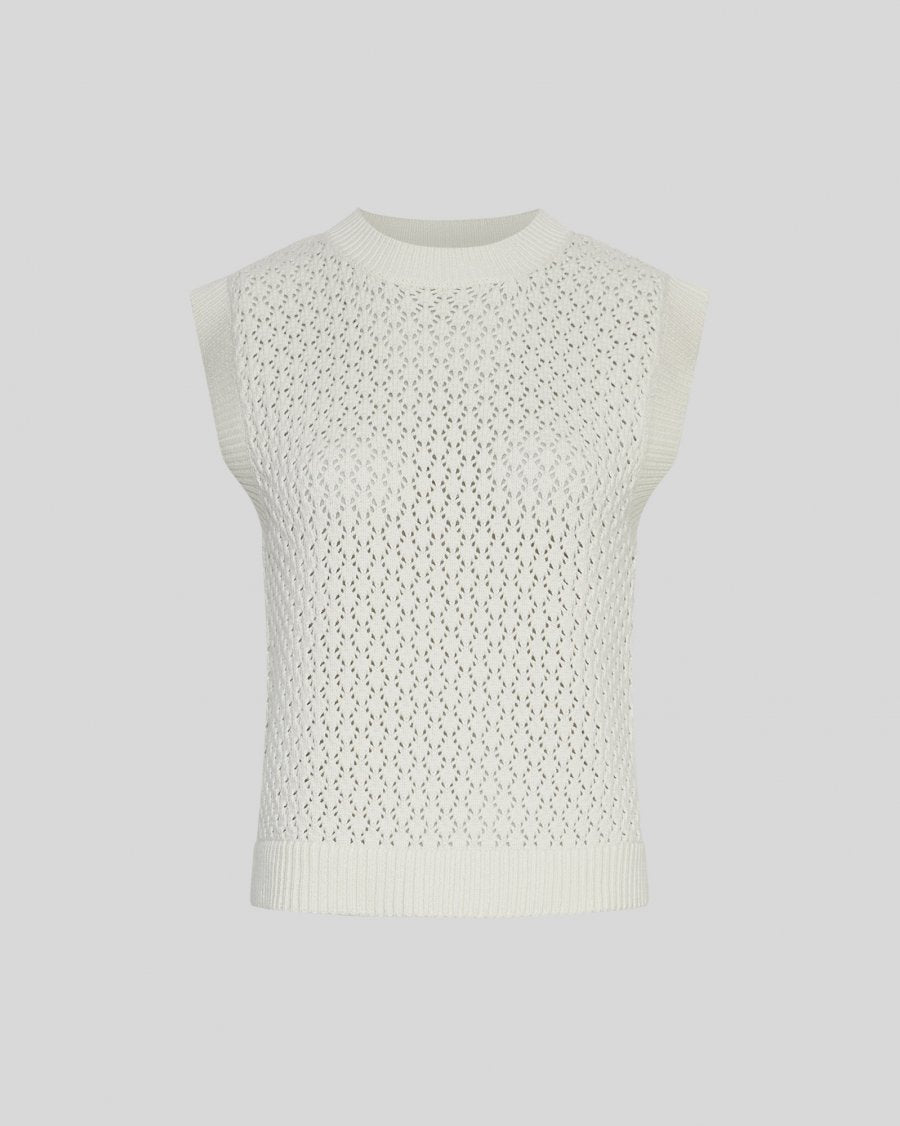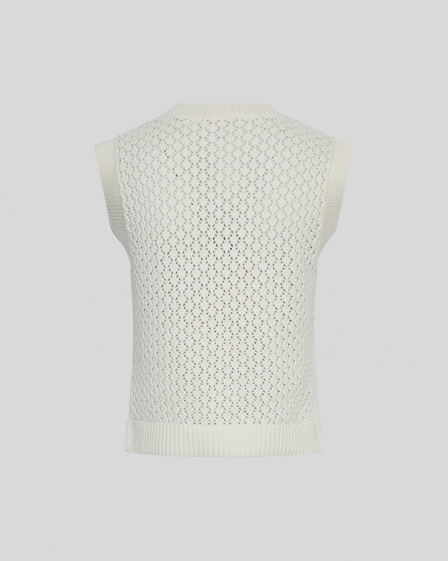The Daina Vest from MSCH is a sleeveless knitted vest featuring an eyelet pattern and ribbed trims. Designed with a round neckline and a regular fit.
