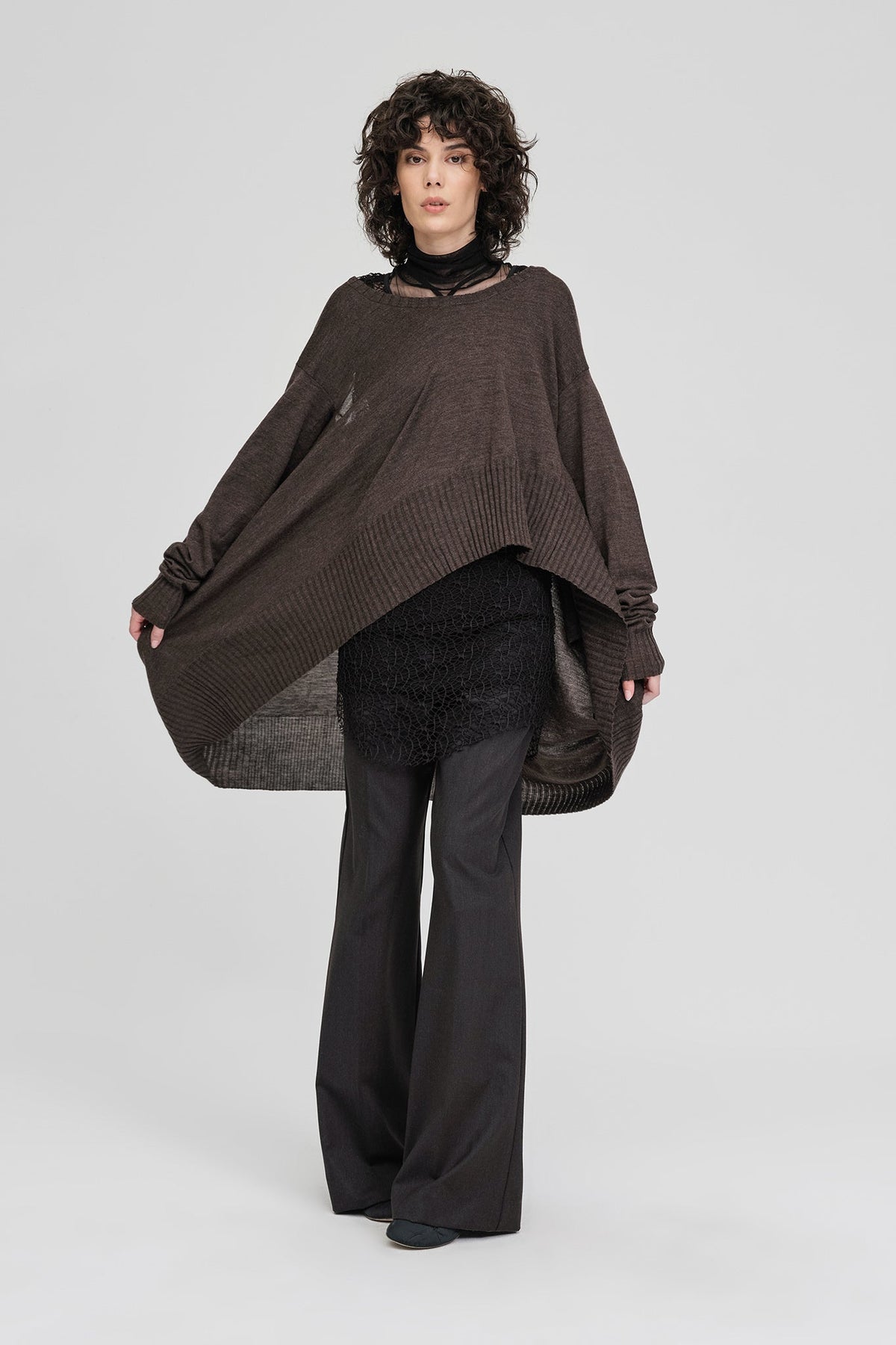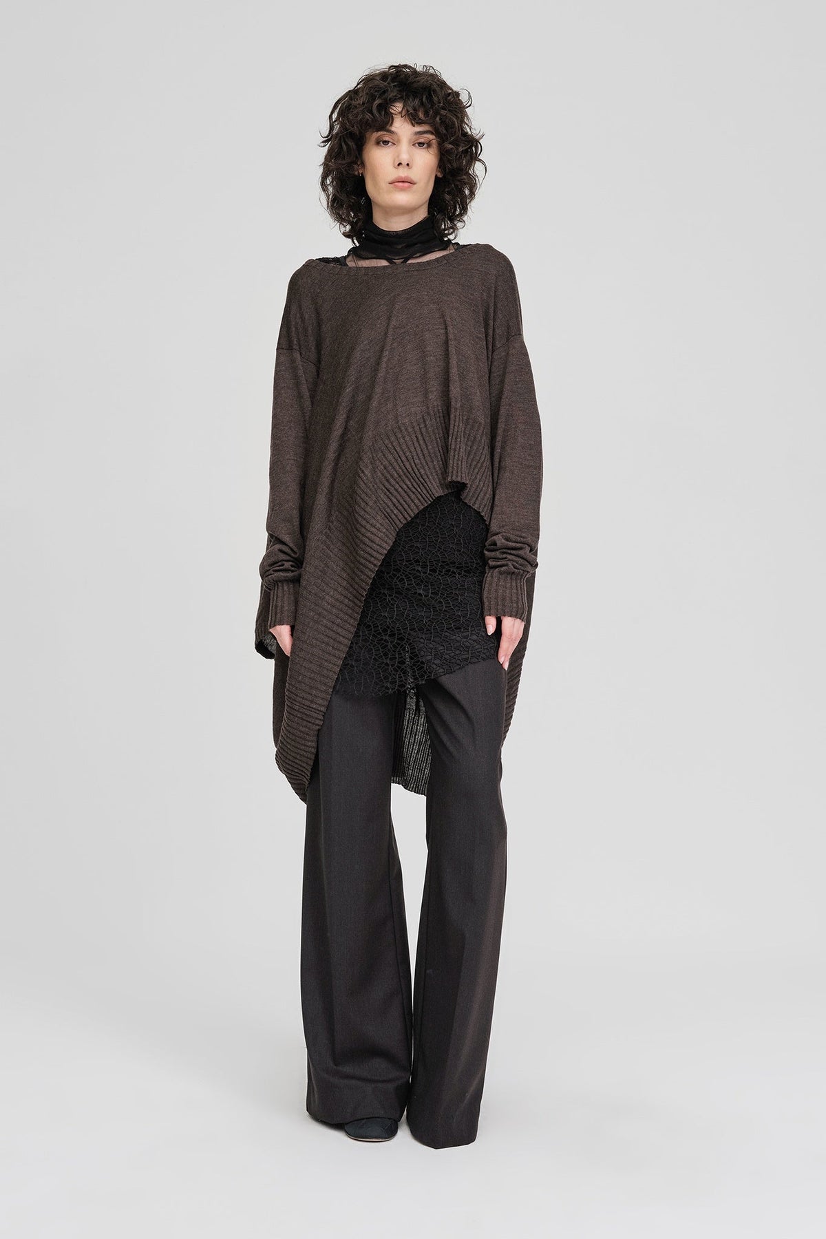 The Abstract Sweater is designed for adaptability, offering multiple ways to wear through its dual neck openings. The silhouette shifts depending on how it’s styled, creating new lines and proportions with each orientation. Ribbed panels introduce movement and direction, while the relaxed knit allows the piece to fall naturally on the body. A considered garment that invites interpretation rather than defining it.