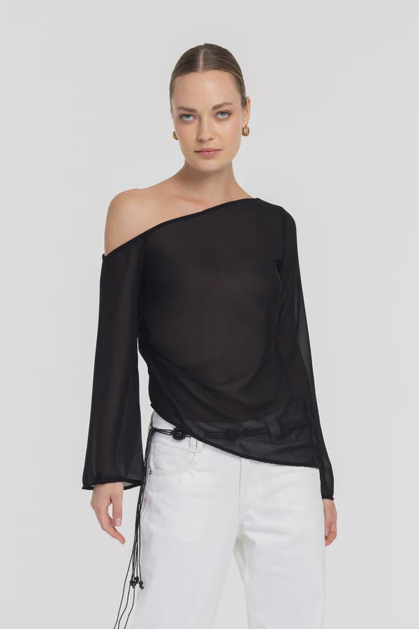 The Feels Like Love Top in Black delivers that sleek, sheer finish that feels equal parts minimal and magnetic. Cut from lightweight polyester chiffon, it skims the body with a relaxed drape and a clean one-shoulder neckline for instant modern glamour. The long sleeves add soft movement, while the angled hem gives it an easy, flattering line—perfect layered over a fitted cami, styled with crisp white denim, or paired back with tailored black for nights out.