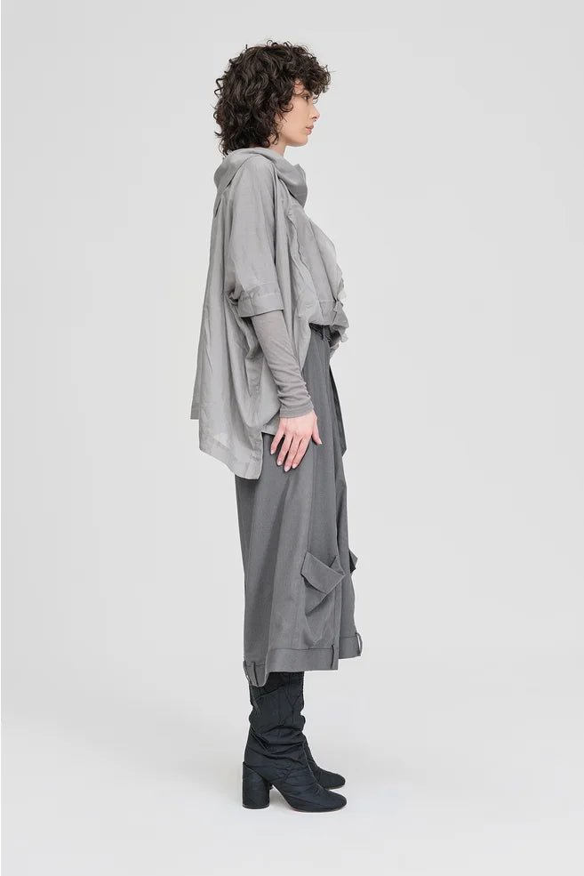Exploring construction and deconstruction through the soft volume of the Squared Assembly Top. Cut in a lightweight silk cotton, it drapes loosely through the body before gathering into a sculptural square fold at the front - creating depth and texture. A wide cowl neckline finishes the piece, bringing an artistic quality to everyday dressing.